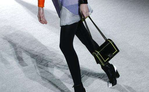 A model holds a handbag for Balmain's ready-to-wear fall-winter 2018/2019 fashion collection presented in Paris, Friday, March 2, 2018. (AP Photo/Thibault Camus)