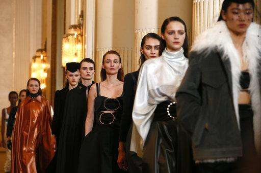 Models wear creations for Nina Ricci's ready-to-wear fall-winter 2018/2019 fashion collection presented in Paris, Friday, March 2, 2018. (AP Photo/Kamil Zihnioglu)