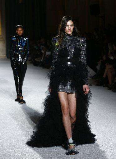 Models wear creation for Balmain's ready-to-wear fall-winter 2018/2019 fashion collection presented in Paris, Friday, March 2, 2018. (AP Photo/Thibault Camus)