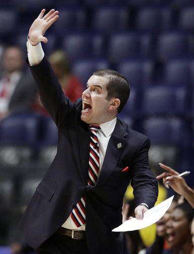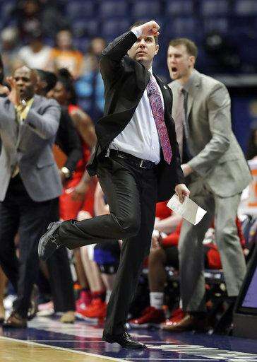 Mississippi head coach Matt Insell yells to his players in the first half of an NCAA college basketball game against Florida at the women's Southeastern Conference tournament Wednesday, Feb. 28, 2018, in Nashville, Tenn. (AP Photo/Mark Humphrey) The Associated Press