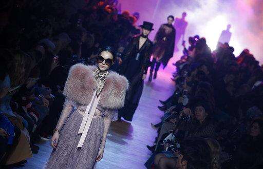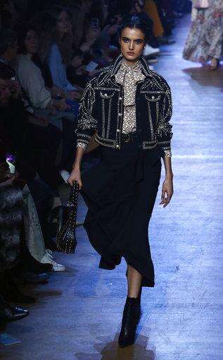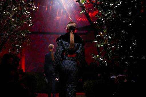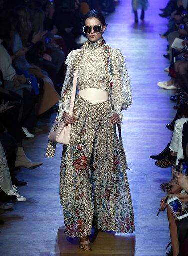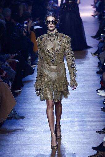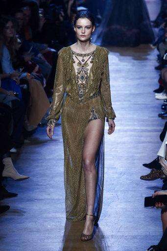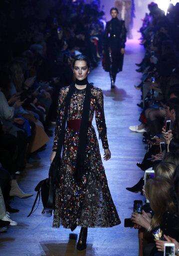 A model wears a creation for Elie Saab's ready-to-wear fall/winter 2018/2019 fashion week runway show in Paris, Saturday, March 3, 2018. (AP Photo/Kamil Zihnioglu) The Associated Press