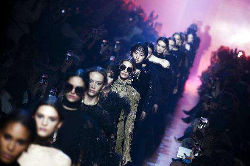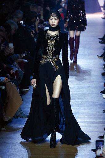 Models wear creations for Elie Saab's ready-to-wear fall/winter 2018/2019 fashion week runway show in Paris, Saturday, March 3, 2018. (AP Photo/Kamil Zihnioglu) The Associated Press