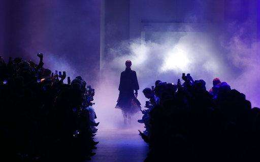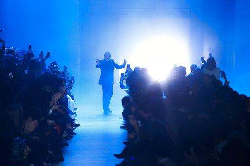 Lebanese designer Elie Saab acknowledges applauses after the presentation of his ready-to-wear fall/winter 2018/2019 fashion week runway show in Paris, Saturday, March 3, 2018. (AP Photo/Kamil Zihnioglu) The Associated Press