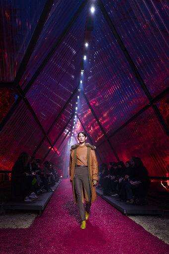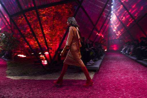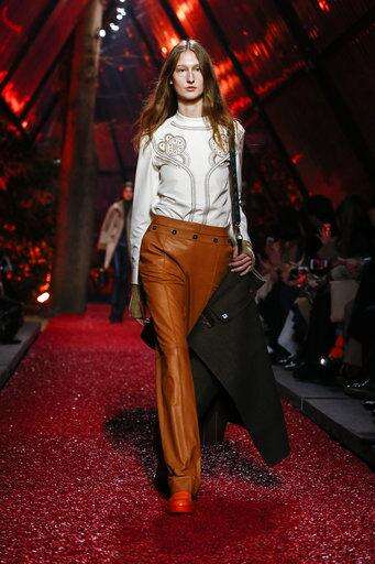 A model wears a creation for Hermes's ready-to-wear fall/winter 2018/2019 fashion collection presented in Paris, Saturday, March 3, 2018. (AP Photo/Kamil Zihnioglu) The Associated Press
