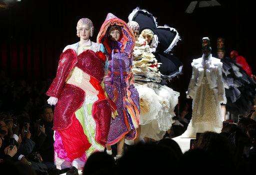 Models wear creations for the Comme des Garcons ready-to-wear fall/winter 2018/2019 fashion collection presented in Paris, Saturday March 3, 2018. (AP Photo/Thibault Camus) The Associated Press