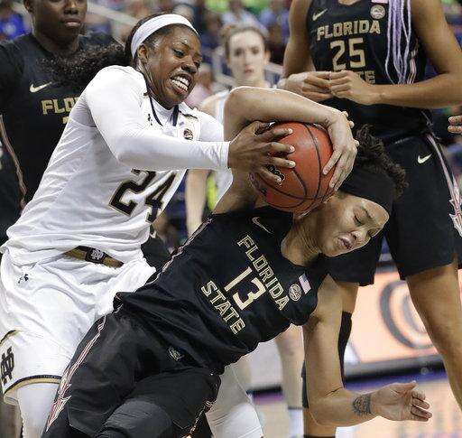 GREENSBORO, N.C. (AP) - Marina Mabrey, Arike Ogunbowale and the rest of fifth-ranked Notre Dame handled Florida State's challenge to their perfect Atlantic Coast Conference Tournament record with veteran composure - particularly when it came to the fourth quarter.