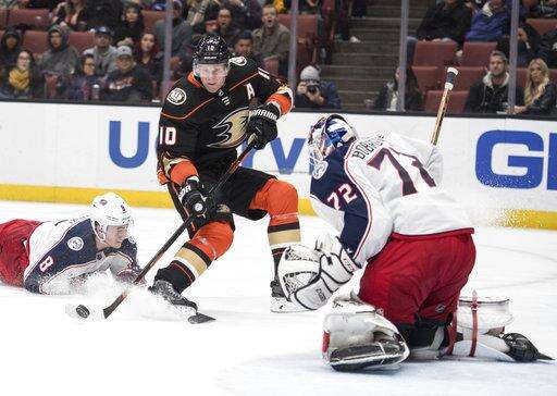 NOTES: Ducks C Ryan Getzlaf missed the game with the flu. ... Blue Jackets C Alexander Wennberg did not play because of an upper-body injury. ... Chris Kelly had one shot and played 9:27 in his Anaheim debut. Kelly signed with the Ducks as a free agent Monday after helping Canada win the bronze medal at the Pyeongchang Olympics. ... Panarin's point streak ended at six games.