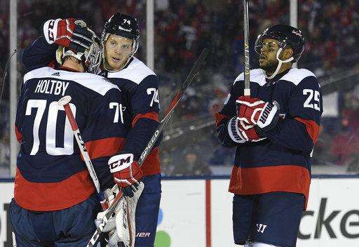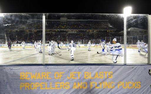 NOTES: Curtis McIlhenney stopped all nine shots he faced in relief of Andersen. ... The gold-medal-winning U.S. Olympic men's curling team delivered the puck for the ceremonial faceoff by curling it to center ice. John Shuster's rink and the gold-medal-winning U.S. women's hockey team were honored as part of the festivities. ... Maple Leafs center Tomas Plekanec became the first player in NHL history to appear in an outdoor game with two different teams in the same season. Plekanec played for the Montreal Canadiens in the Centennial Classic in December. ... Maple Leafs star Auston Matthews missed his fourth consecutive game with an apparent right shoulder injury. ... Deputy commissioner Bill Daly says the NHL hopes to stage outdoor games at Army's West Point and the Air Force Academy.