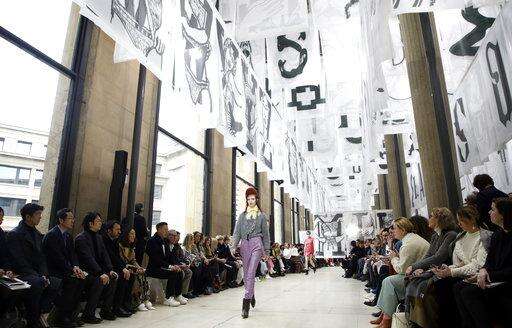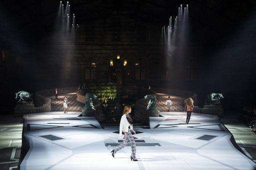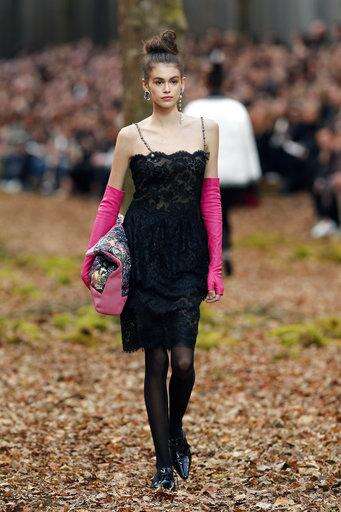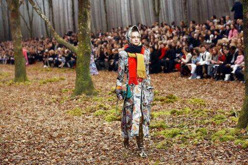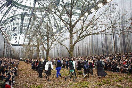 PARIS (AP) - VIP guests at Paris Fashion Week left the urban bustle at the door Tuesday as they entered Paris' Grand Palais to discover a giant indoor forest complete with dewy scents and rustling dry leaves at Chanel's spectacular ode to fall.
