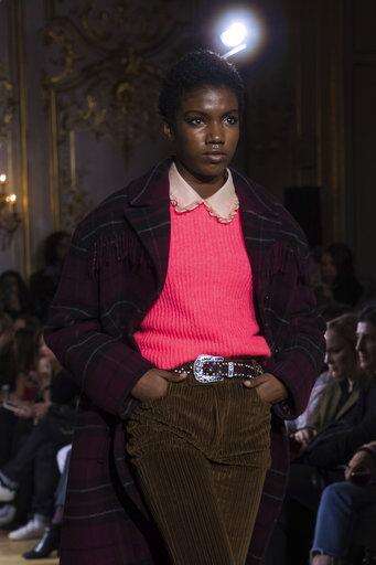 An autumnal palette in the clothes mirrored the oak leaves and green moss that covered the floor at the Grand Palais salon.