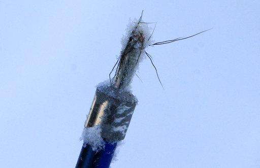 A skin sample wraps around a needle in the tip of the darts, which have heavy barrels to make them immediately fall into the snow.
