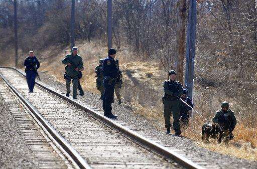 K-9 units and other police officers search Millpond Park in Mount Pleasant, Mich., Friday, March 2, 2018, during a manhunt for a man suspected of killing two people in a residence hall on Central Michigan University's campus. (Lisa Yanick Litillwer/The Morning Sun via AP) The Associated Press