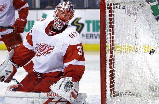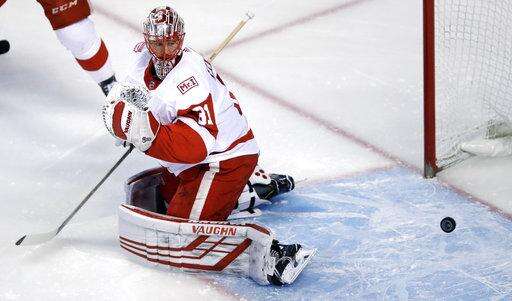 Jared Coreau was beaten by the first two shots he faced and stopped just 12 of 16 shots before he was replaced 3:27 into the second period. Jimmy Howard faced 19 shots and saved 17 of them.