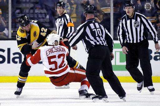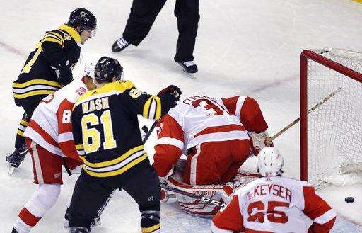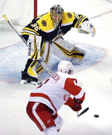 NOTES: Nielsen left the game after taking a hit to the head from David Backes in the first period. He received medical attention on the ice but skated off on his own. ... Bruins defenseman Charlie McAvoy is out for at least a month with a sprained left MCL. General manager Don Sweeney said earlier Tuesday that McAvoy will be evaluated in four weeks. He was injured Saturday in the opening shift of Boston's 2-1 overtime win over Montreal. ... It was the 600th meeting between the two Original Six teams. Detroit holds a 251-250-95-4 edge, but Boston has gone 14-1-1 in the last 16 games. ... It was Irish Heritage Night, and the Bruins practice jerseys were green with plaid trim. Irish step dancers and musicians were featured in the concourse and vomitoria. ... Coreau made his first NHL appearance of the season after being named the AHL goaltender of the month in February.