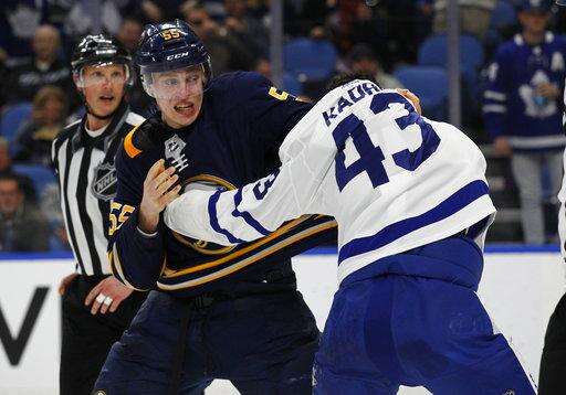 NOTES: The Sabres continued their home dominance over Toronto, improving to 19-3-1 in their past 23 meetings at Buffalo. ... One of the more amusing moments came when television cameras captured an exchange between Ristolainen and Toronto's Nazem Kadri, after the two were sent to the penalty box for fighting in the second period. Ristolainen held up four fingers in telling Kadri the teams play four more times. Kadri responded by correcting Ristolainen, saying it's only three more times because Monday's game didn't count. ... Maple Leafs LW Matt Martin had an assist while playing for the first time since a 4-2 loss to Colorado on Jan. 22. Martin had been a healthy scratch for 18 consecutive games.