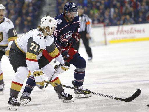 NOTES: Vegas' leading scorer, William Karlsson, was cheered during first trip back to Columbus after being snagged from the Blue Jackets in the expansion draft. ... Vegas F Reilly Smith left the game in the second period and didn't return after taking a hit from Columbus D David Savard. His condition was not available. ... A goal by Dubois at 6:14 in the first period was waved off after a replay determined Cam Atkinson was offside when he carried the puck into the zone. ... G Jeff Zatkoff dressed after an emergency recall from Cleveland of the American Hockey League to back up Korpisalo. ... Vegas F Pierre-Edouard Bellemare returned after missing seven games with a hand injury. ... Atkinson has 15 points in his last 19 games after missing 11 games with a fractured foot suffered in late December.