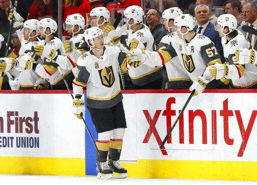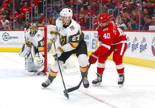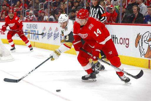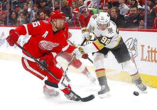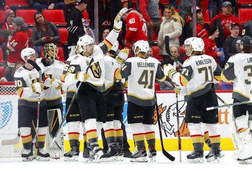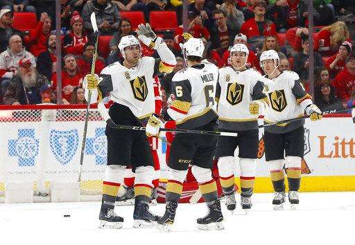 NOTES: Anaheim's 1993-94 team also won 19 road games in its first season... Vegas scratched Smith with an upper-body injury, and Gallant said he is day to day. ... Vegas forward Tomas Tatar, acquired Feb. 26 from Detroit, was welcomed back with cheers from the crowd after highlights were shown of him playing for the Red Wings. ... Detroit F Evgeny Svechnikov was recalled from the AHL earlier in the day, and the 2015 first-round pick played for the Red Wings for the first time this season and third time in his career. ... Knights D Nate Schmidt, who missed his fourth straight game with an upper-body injury, is expected to join the team in Buffalo. ... Detroit was shut out for the second time this season. ... Vegas signed former Bemidji State University defenseman Zach Whitecloud as a free agent. ... The Red Wings won 6-3 in Vegas early in the season.