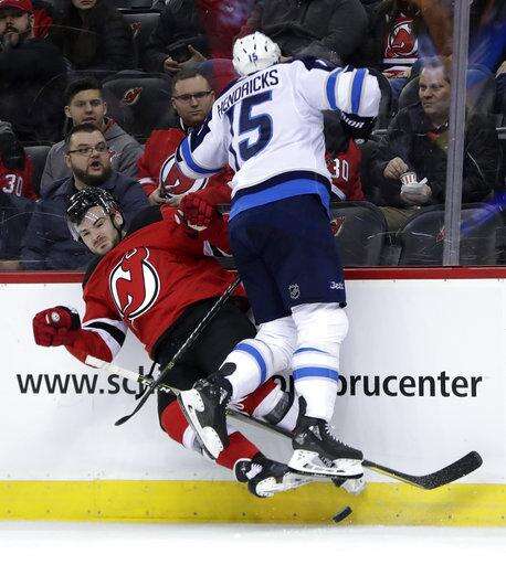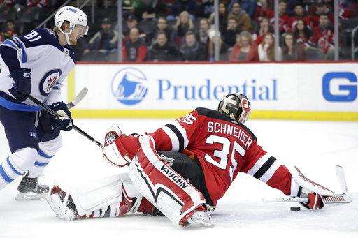 NOTES: Jets C Mark Scheifele missed the game with an upper-body injury. He is day to day. ... Devils LW Brian Gibbons returned to the lineup for the first time since breaking his thumb on Jan. 20. He replaced C Pavel Zacha, who was out with an upper-body injury. ... This was the third game of a season-high six-game road trip for Winnipeg. The Jets have upcoming stops in Philadelphia, Washington and Nashville. .... The Devils will embark on a similar journey. They are on the road for the next six, a trip that includes visits to all three California teams and Las Vegas. New Jersey's next home game is March 24 vs. Tampa Bay. ... With G Steve Mason out with a lower-body injury, the Jets recalled Michael Hutchinson from the Manitoba Moose. Hutchinson's flight was delayed, so Winnipeg signed Zane Kalemba, a 32-year-old from Saddle Brook, New Jersey, to a try-out contract as an emergency backup to Hellebuyck. Hutchinson arrived for the second period. ... Devils C Travis Zajac did not return after absorbing a big hit from Andrew Coop in the second period. New Jersey coach John Hynes said he did not have an update on Zajac.