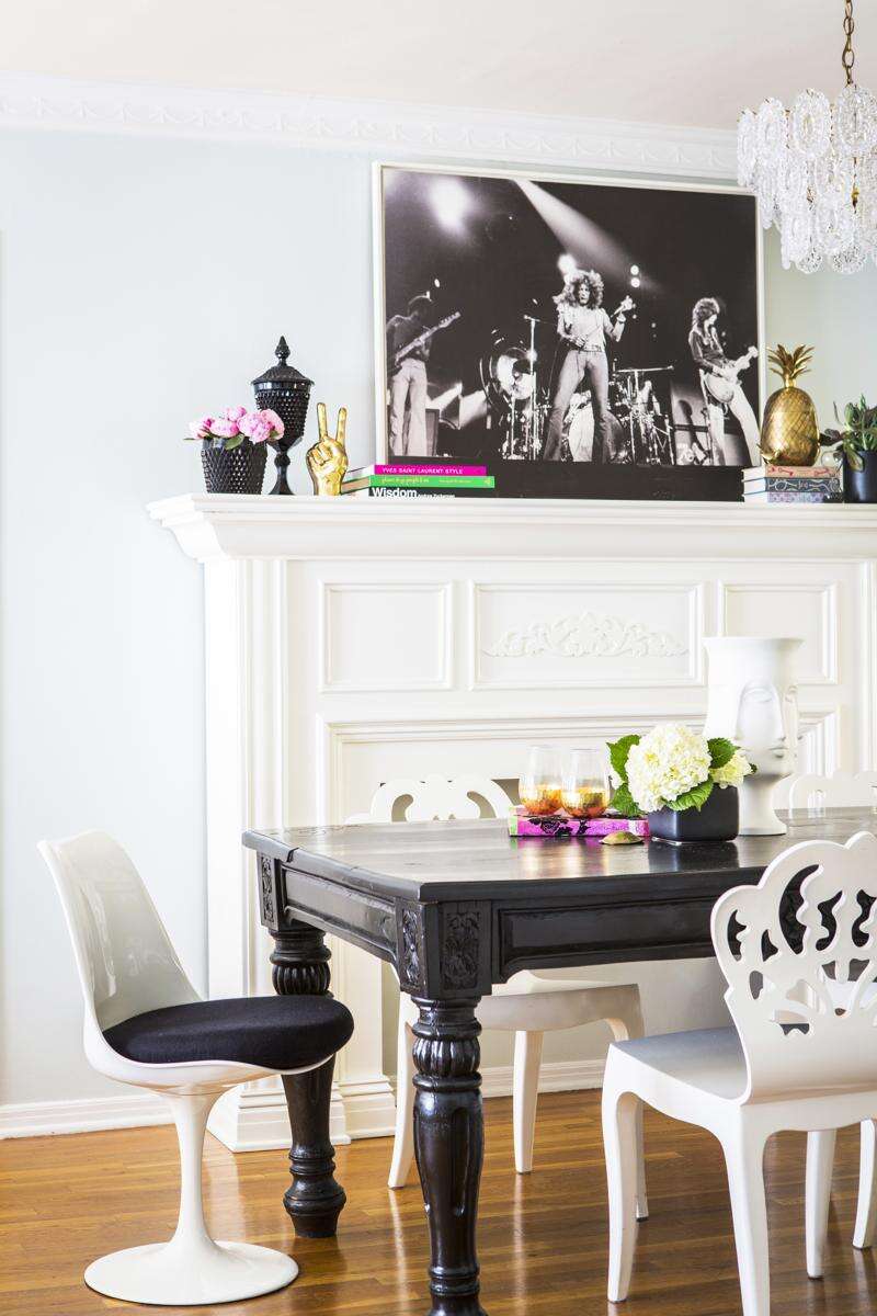 McClendon adds just the right amount of glamour by using sharp contrasts: She chose lush velvet upholstery in a bold shade of teal for her living room sofa. But she opted for an angular, modern shape, rather than a sofa with a tufted back and rolled arms. The clean lines keep the Hollywood glam fabric from feeling overpowering.