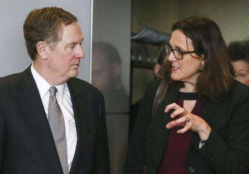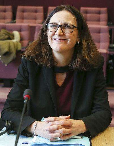 EU Trade Commissioner Cecilia Malmstroem met Saturday in Brussels with Japanese Economy, Trade and Industry Minister Hiroshige Seko, before U.S. trade representative Robert Lighthizer arrived to join them for three-way talks as well as individual discussions with the EU and Japanese trade chiefs.