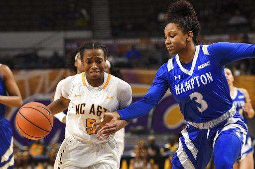 It was a wild end to regulation after Scaife hit a 3-pointer and then added a free throw a half-minute later to put A&T up 54-44. The Aggies put up some hurried shots and had two turnovers. A pair of free throws from Monnazjea Finney-Smith pulled Hampton within 54-52.