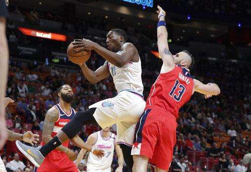 Jodie Meeks scored 23 for the Wizards, whose five-game winning streak was snapped. Bradley Beal scored 14 for Washington, which was outscored 76-42 in the paint - even on a night where Heat center Hassan Whiteside couldn't play because of hip pain and his replacement, Bam Adebayo, was limited with foul trouble.