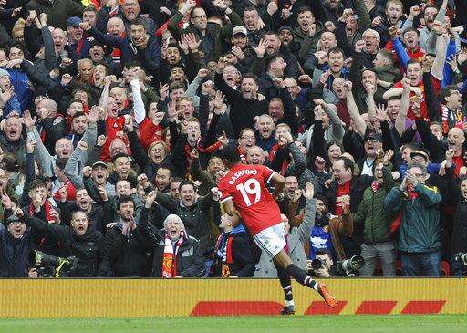 MANCHESTER, England (AP) - Marcus Rashford scored twice in the first 24 minutes of his first start of 2018 before Manchester United held on for a 2-1 win over fierce rival Liverpool to strengthen its second place in the Premier League on Saturday.