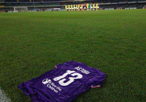 The Verona players walked out before the match all wearing No. 13 shirts bearing "Davide" in tribute to former Fiorentina captain Davide Astori, who died last weekend from suspected cardiac arrest.