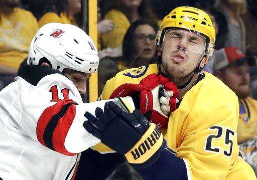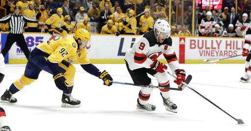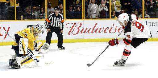 NOTES: Nashville D Roman Josi returned to the lineup after missing four games with an upper-body injury. ... Prior to the game, Josi and Boyle, a cancer survivor, took part in a ceremonial faceoff as part of the NHL's Hockey Fights Cancer initiative. ... Devils D Will Butcher had one assist, extending his point-scoring streak to three games. ... New Jersey is 25-0-2 when leading after two periods this season.