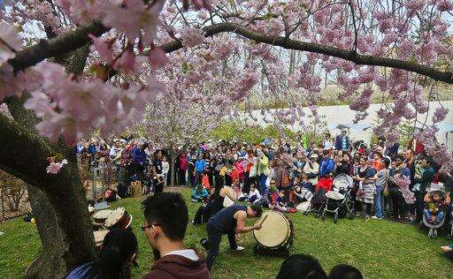 The Brooklyn Botanic Garden in New York City also celebrates the blooming of cherry trees that were a gift from the Japanese government. A two-day festival called Sakura Matsuri is planned this year for April 28-29 with some 60 events, including performances by taiko drummers. The garden features a Japanese pond and garden as well as an esplanade lined with some of its 200 cherry trees.