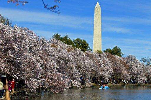 In Washington, D.C., the projected peak date for cherry blossoms along the Tidal Basin was pushed back to March 27-31 due to colder temperatures, with the National Cherry Blossom Festival running March 20-April 15. The festival marks the 1912 gift of 3,000 cherry trees from a Tokyo mayor to the U.S. capital city.