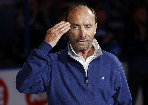 Country entertainer Lee Greenwood salutes after singing the National Anthem before an NHL hockey game between the Tampa Bay Lightning and the Ottawa Senators Tuesday, March 13, 2018, in Tampa, Fla. (AP Photo/Chris O'Meara) The Associated Press