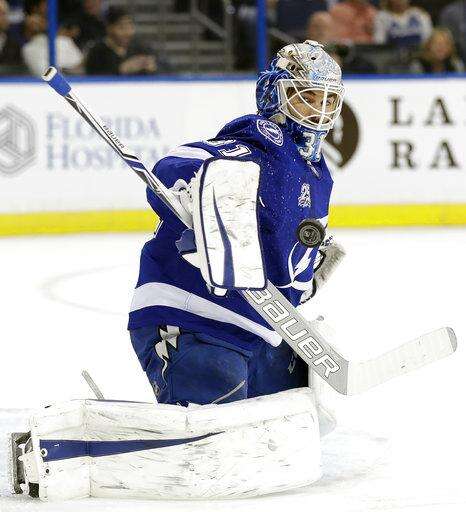 Tampa Bay Lightning goaltender Peter Budaj, (31) of Slovakia, makes a save on shot by the Ottawa Senators during the third period of an NHL hockey game Tuesday, March 13, 2018, in Tampa, Fla. The Senators won thegame 7-4.(AP Photo/Chris O'Meara) The Associated Press