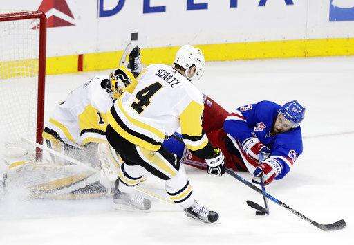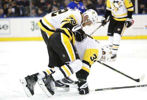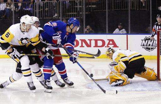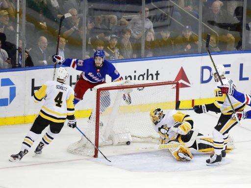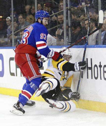 NOTES: Susan Sarandon served as celebrity guest 'Inside the Glass' analyst alongside Pierre McGuire during the first period on the NBCSN telecast. ... Murray joined his teammates during the morning skate but a timetable for his return is still unclear. ... Pittsburgh reassigned forward Josh Jooris to the Wilkes-Barre/Scranton Penguins of the American Hockey League to make room for Rust. . Kevin Hayes skated in his 299th career NHL game, while Mika Zibanejad participated in his 398th NHL game. ... Prior to the game, Rangers announced defenseman Tony DeAngelo suffered a sprained ankle and will miss the next three-four weeks essentially ending his season.