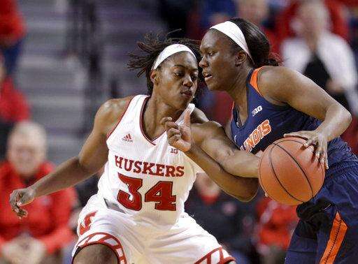 File-This Feb. 1, 2018, file photo shows Nebraska's Jasmine Cincore (34) reaching for the ball held by Illinois' Cierra Rice (5) during the first half of an NCAA women's college basketball game in Lincoln, Neb. Making the women’s NCAA Tournament really wasn’t Nebraska’s goal at the start of the season. Coming off the worst year in program history, the Cornhuskers’ wish list was filled with what would be considered more basic needs.Like team chemistry, learning how to play sound defense, winning some road games. (AP Photo/Nati Harnik, File) The Associated Press