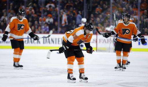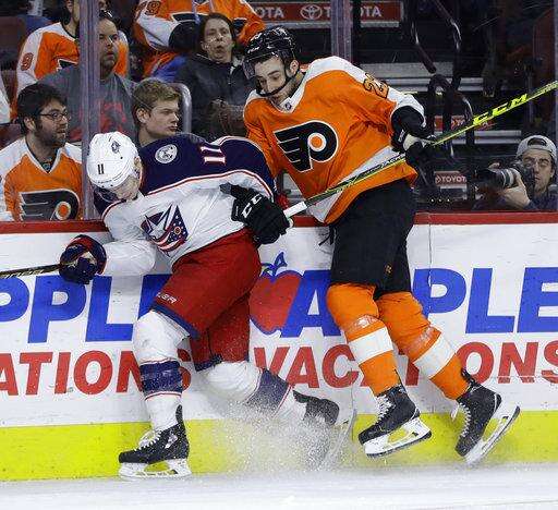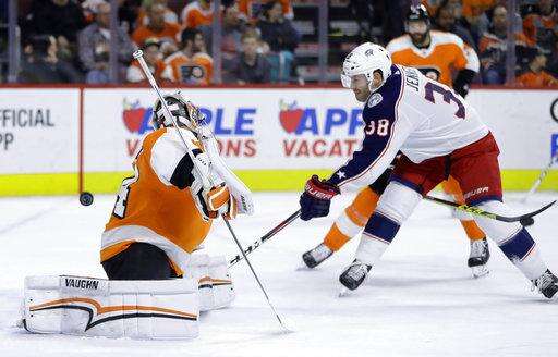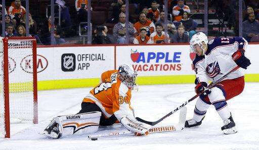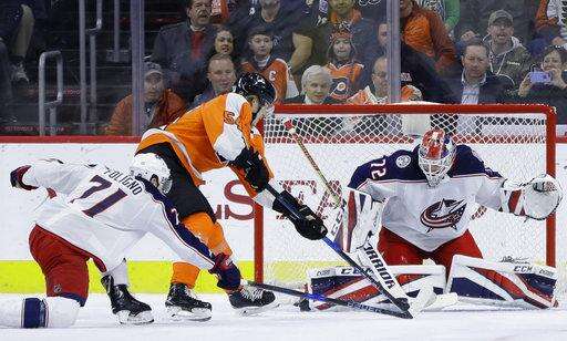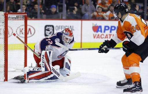 NOTES: Flyers G Brian Elliott practiced in full pads with goaltending coach Kim Dillabaugh at the morning skate. Elliott had core muscle surgery on Feb. 13 and was expected to miss five to six weeks. ... Columbus LW Matt Calvert returned to the lineup after sitting out Wednesday's 5-2 win over Montreal. ... The teams ended the regular-season series with two wins apiece. ... Giroux received stiches to his upper lip after taking a puck to the face with 14 minutes left in the second period.