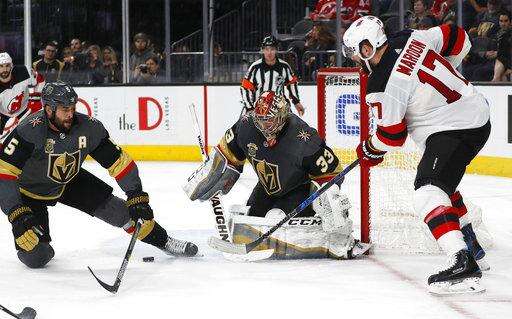 Less than two minutes later, while streaking down the right side, Hischier's attempt at centering a pass to the crease deflected off Vegas' Tomas Tatar and past Fleury to make it 2-0.