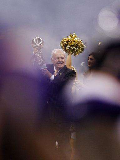 File-This Sept. 9, 2010, file photo shows New Orleans Saints owner Tom Benson holding up the Super Bowl trophy before the Saints' NFL football season opener against the Minnesota Vikings in New Orleans. Benson, a successful auto dealer who brought the New Orleans Saints their only winning seasons and the "Benson Boogie," has died. Benson, who has also owned the NBA’s New Orleans Pelicans since 2012, was 90. The NFL and NBA teams announced Benson’s death on Thursday, March 15, 2018. (AP Photo/Dave Martin, File) The Associated Press