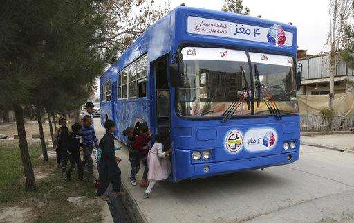 KABUL, Afghanistan (AP) - The children of Kabul love the blue bus - they rush toward it every time it pulls into their street, eager to come onboard, their young eyes brimming with excitement.