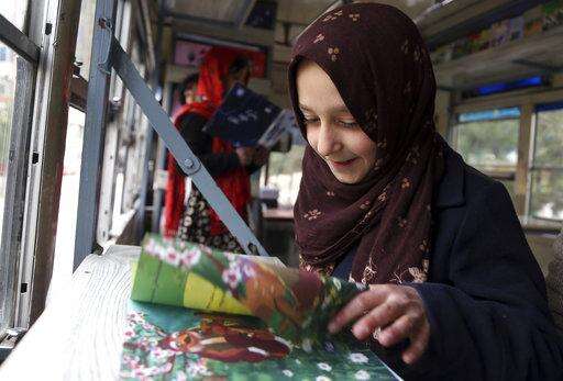 On a recent day in her western Kabul neighborhood of Kart-e-Char, 11-year-old Marwa could hardly wait for the bus to turn the corner of the road so she could see it, run and jump in, and start reading.