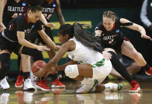 Oregon: Ionescu finished the first half with 14 points and was 6-for-6 from the free throw line. ... Oregon played all of its available players in the opening half. ... Ayuso, a freshman, had another ankle-breaking crossover in the Pac-12 tournament against Colorado that went viral.