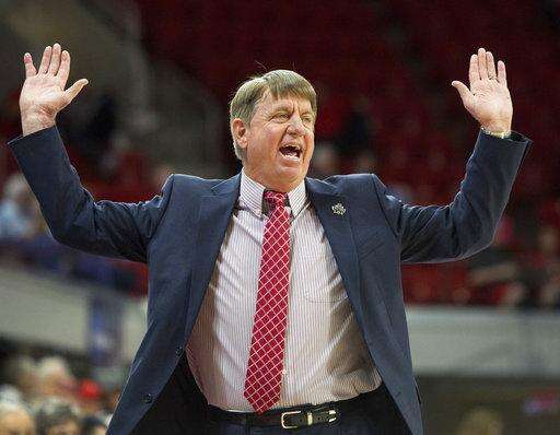 North Carolina State head coach Wes Moore reacts to a call during the first half of a first-round game in the NCAA women's college basketball tournament against Elon in Raleigh, N.C., Friday, March 16, 2018. (AP Photo/Ben McKeown) The Associated Press