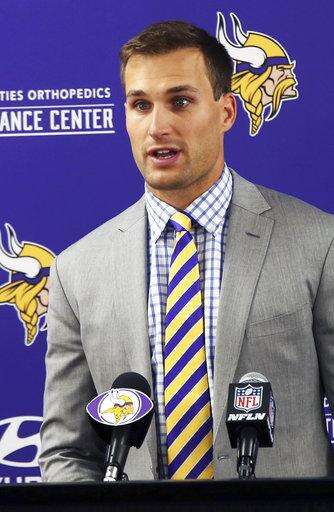 Minnesota Vikings new quarterback Kirk Cousins addresses the media after he was introduced during a news conference, after signing a three-year, $84 million contract, at the NFL football team's new headquarters Thursday, March 15, 2018, in Eagan, Minn. (AP Photo/Jim Mone) The Associated Press