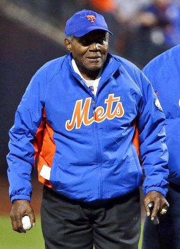 FILE - In this Oct. 13, 2015, file photo, former New York Mets player Ed Charles prepares to throw out the ceremonial first pitch before the start of baseball's Game 4 of the National League Division Series between the Mets and the Los Angeles Dodgers in New York. Charles, the third baseman known as "The Glider" who helped lead the Miracle Mets to the 1969 World Series title with his veteran guidance and poetry, died Thursday, March 15, 2018, in New York. He was 84. (AP Photo/Frank Franklin II, File) The Associated Press