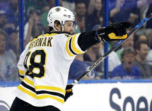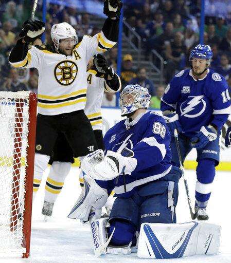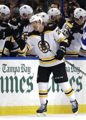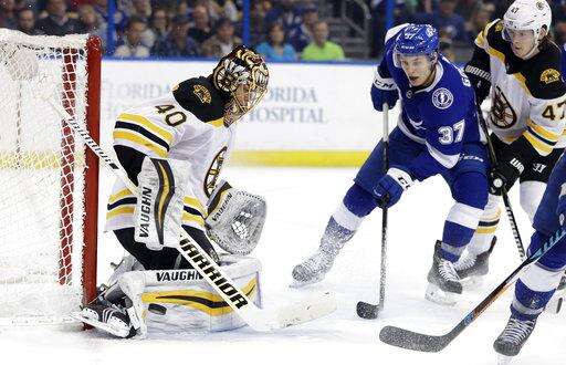 NOTES: Tampa Bay recalled G Louis Domingue from Syracuse of the American Hockey League before the game and he dressed as the backup. ... Boston improved to 32-0-3 this season when holding a two-goal lead at any point in the game. ... The Lightning have allowed five power-play goals in the past three games and at least one power-play goal in 11 of the past 12. ... Boston D Zdeno Chara missed his second consecutive game with an unspecified upper-body injury.
