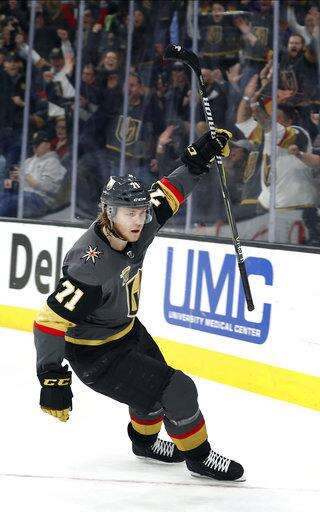 LAS VEGAS (AP) - In a game that included William Karlsson's natural hat trick and Marc-Andre Fleury getting his 48th career shutout and 401st win, Vegas coach Gerard Gallant credited a hit by forward Ryan Reaves as the biggest play.