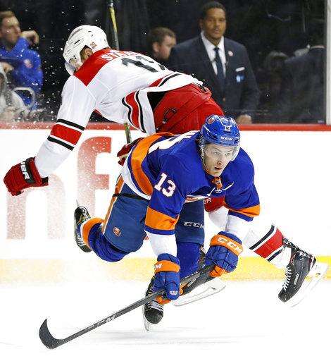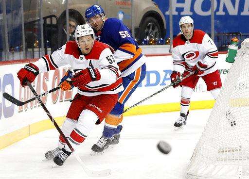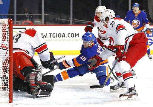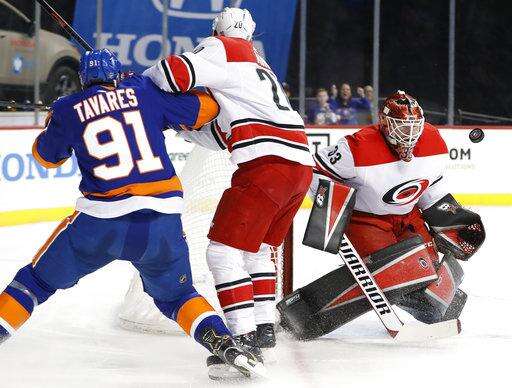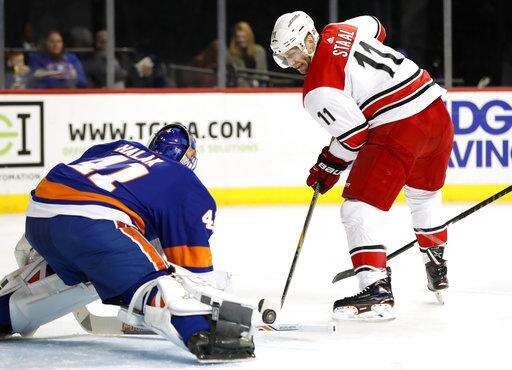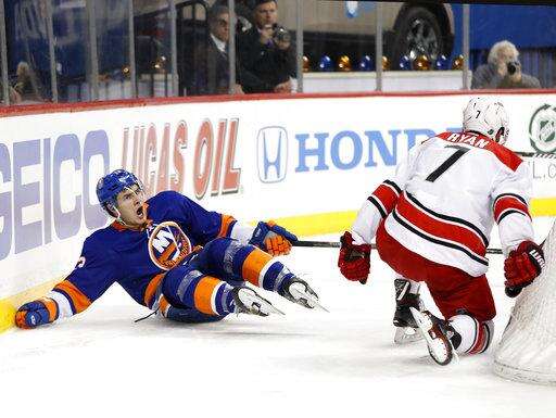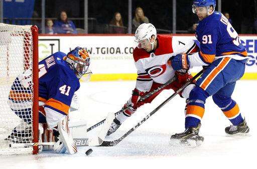 NOTES: The Islanders scratched D Dennis Seidenberg and D Brandon Davidson, along with F Ross Johnston. ... Carolina scratched D Noah Hanifin because of an upper body injury. ... Carolina improved to 8-3-3 in their last 14 games against Islanders and the Hurricanes are 24-9-7 since the start of the 2008-09 season against New York. ... Lee's tying goal in the third came about 40 seconds after Carolina forward Sebastian Aho was whistled for hooking Islanders defenseman Sebastian Aho.