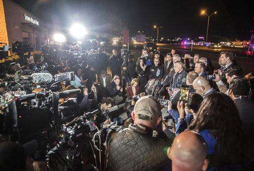 Austin Police Chief Brian Manley briefs the media, Wednesday, March 21, 2018, in the Austin suburb of Round Rock, Texas. The suspect in a spate of bombing attacks that have terrorized Austin over the past month blew himself up with an explosive device as authorities closed in, the police said early Wednesday. (Ricardo B. Brazziell/Austin American-Statesman via AP) The Associated Press