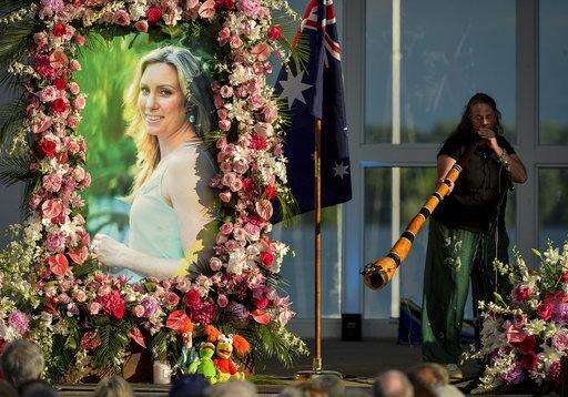 FILE - In this Aug. 11, 2017, file photo, Johanna Morrow plays the didgeridoo during a memorial service for Justine Ruszczyk Damond at Lake Harriet in Minneapolis. Minneapolis police officer Mohamed Noor, who shot and killed Damond, an Australian woman in July, has turned himself in after a warrant was issued for his arrest. A news conference was scheduled later Tuesday, March 20, 2018, to announce charges in the case. Damond was shot July 15, 2017, minutes after she called 911 to report a possible sexual assault in the alley behind her home. (Aaron Lavinsky /Star Tribune via AP, File) The Associated Press