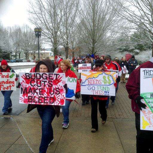 "We need to take our legislators to school," said Jessica Hiler, a teacher from Fayette County. "It is our job to school them on what is wrong with this budget."